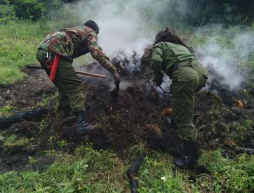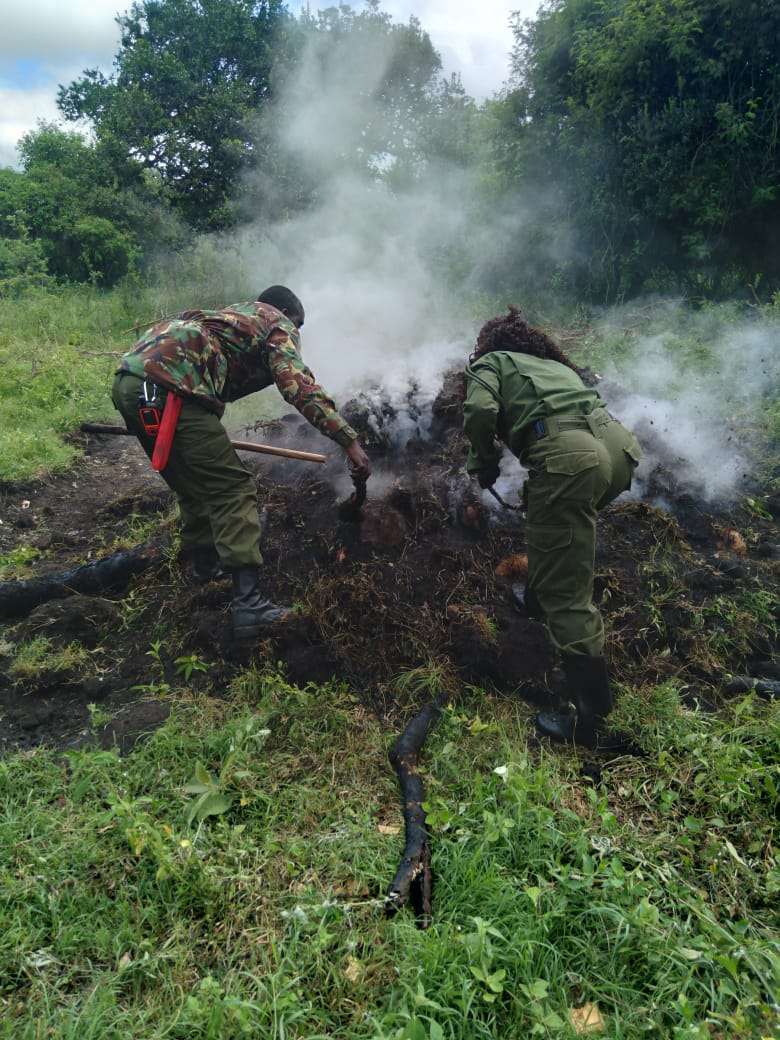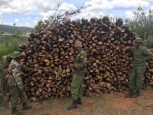 Alongside key partners, MEP established and grew a permanent presence in key endangered forest areas of the ecosystem, the Mau, Loita and Nyekweri. MEP rangers increase security for wildlife and communities in their areas of operation all while deterring habitat destruction activities like illegal logging and charcoal production and bushmeat poaching. MEP’s habitat protection activities are key specifically in the Loita, Mau and Nyekweri forests and this has been quite a challenge for our rangers as communities still rely heavily on cedar and other hardwoods for their houses, fences or firewood and land ownership is often unclear. Regular patrols of these forested area of the GME alongside partners Kenya Forest Service (KFS), Bongo Surveillance Project (BSP) and Kenya Wildlife Service are key to rooting out destructive activities.
