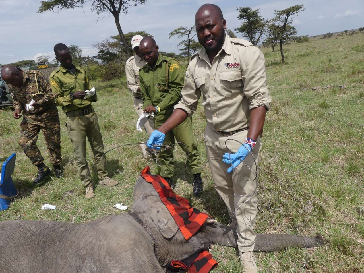 To increase elephant protection, Mara Elephant Project assists the Kenya Wildlife Service / Sheldrick Wildlife Trust Mobile Vet Unit to treat injured elephants. As conflict increases in the Mara and our monitoring efforts advance, more elephants are being identified with injuries like arrow and spear wounds related to conflict. When this happens, MEP deploys our rangers and researchers on the ground and the helicopter in the air to assist our partners with the treatment of a wounded elephant. We also provide monitoring of the elephant post treatment to oversee his or her healing process.